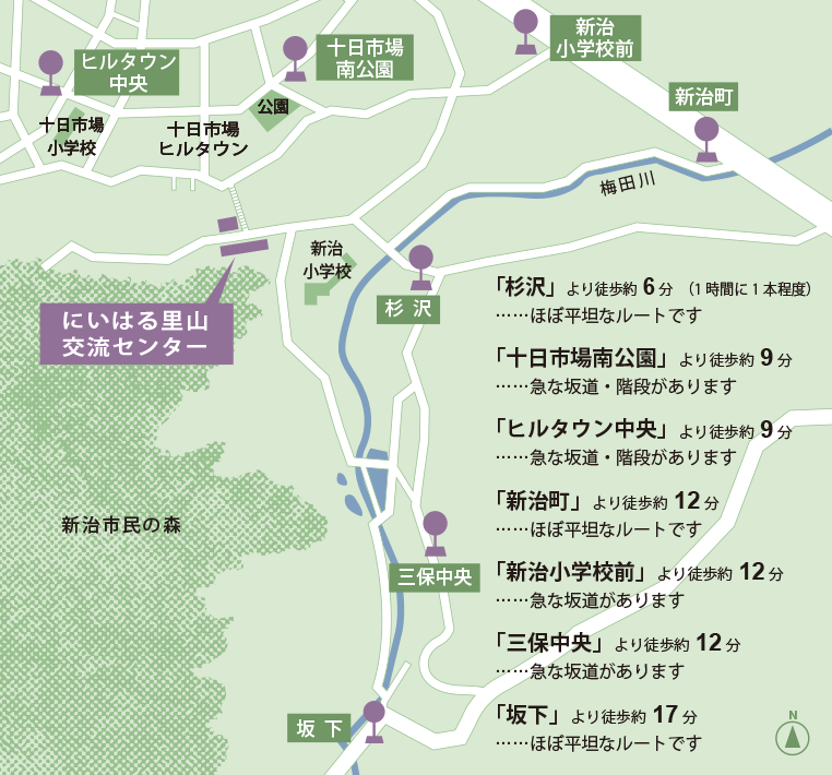 バス停「新治町」から徒歩12分 ……※ほぼ平坦なルートです